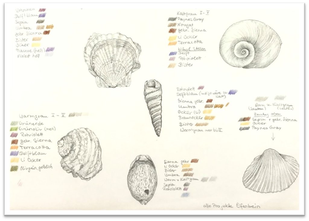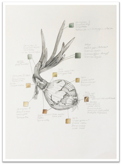 Diese Skizze enthält schon sehr detaillierte Angaben zu den Farben und dem Schichtaufbau.